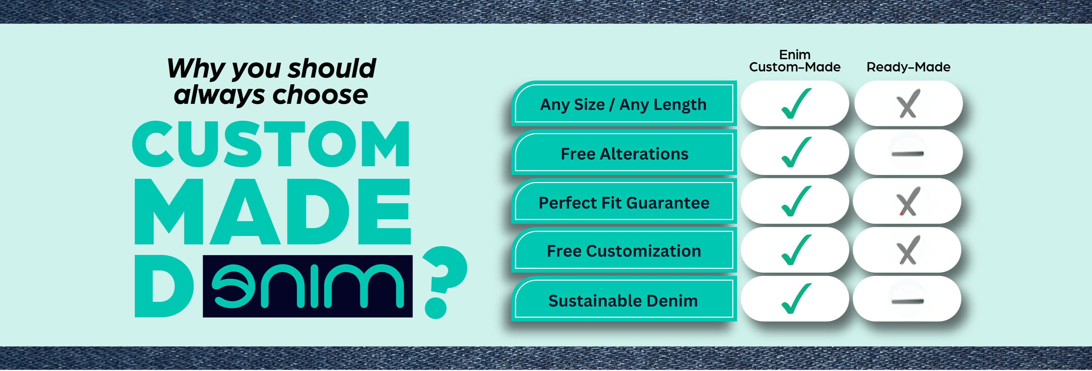 I ordered jeans from here, and they have a superb and perfect fit. The fabric is awesome. I'm really thankful I found a good website for my fitting needs. When I ordered, they called me, got all the details, and provided a great fit. Really, Enim has done great work.
