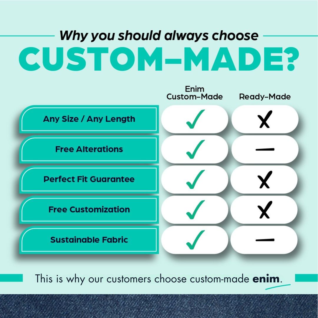 I ordered jeans from here, and they have a superb and perfect fit. The fabric is awesome. I'm really thankful I found a good website for my fitting needs. When I ordered, they called me, got all the details, and provided a great fit. Really, Enim has done great work.