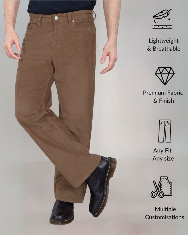 Custom made British Khaki Classic Straight Fit Corduroy Cargo for Men