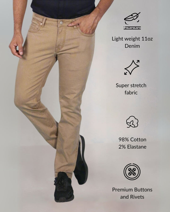 Our good looking and highly durable stretch denim is a blend of Cotton and Polyster with 2% Elastane, sourced from one of the Finest mills in India like LNJ Denim, KG Denim & Raymond UCO with YKK zippers and premium quality Buttons and Rivets.                ...Read more