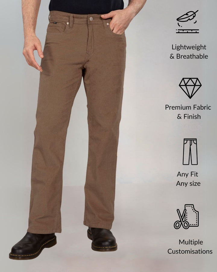 Custom made British Khaki Classic Straight Fit Corduroy Cargo for Men