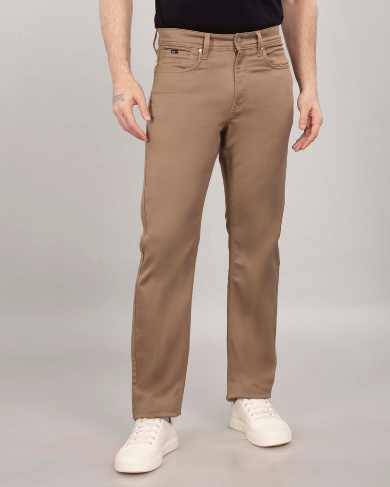 British Khaki Stretch Denim - Straight Fit Jeans