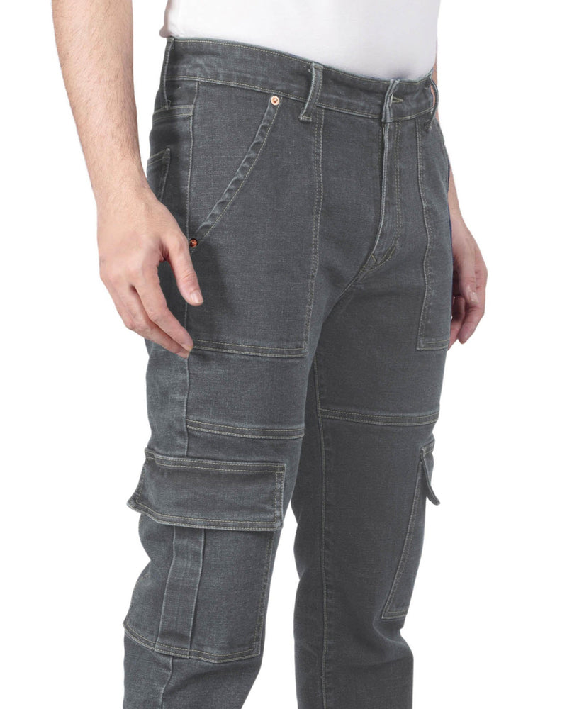 Charcoal Non-Stretch Denim Neo Cargo