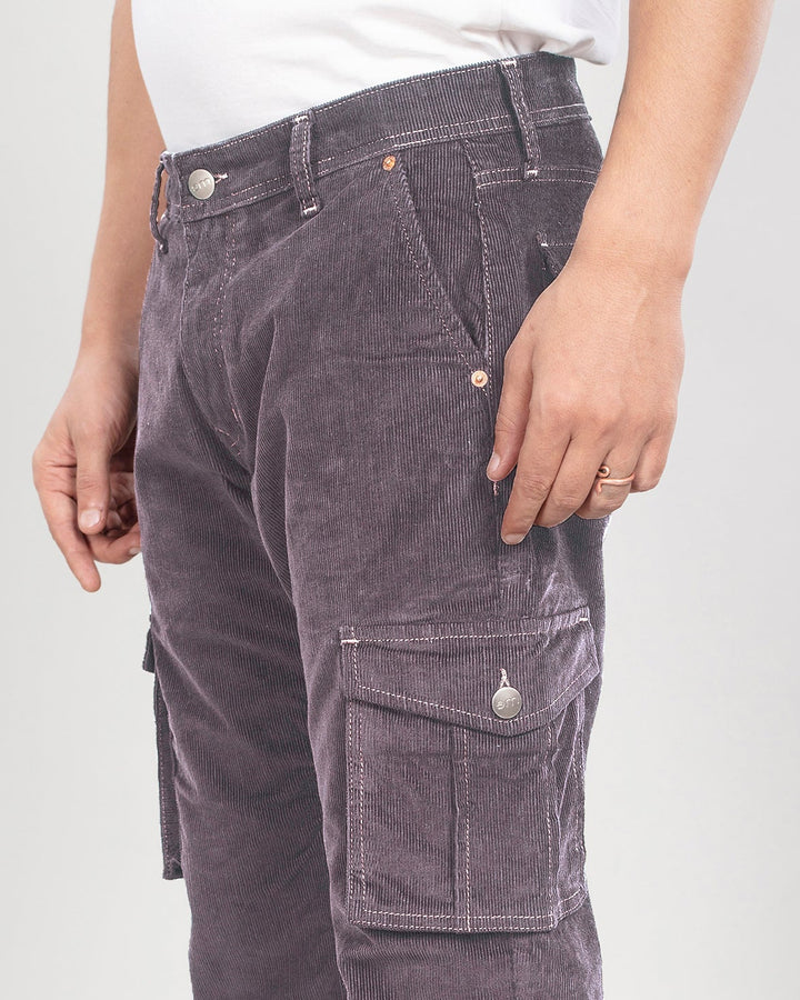 Custom made Dark Grey Classic Straight Fit Corduroy Cargo for Men