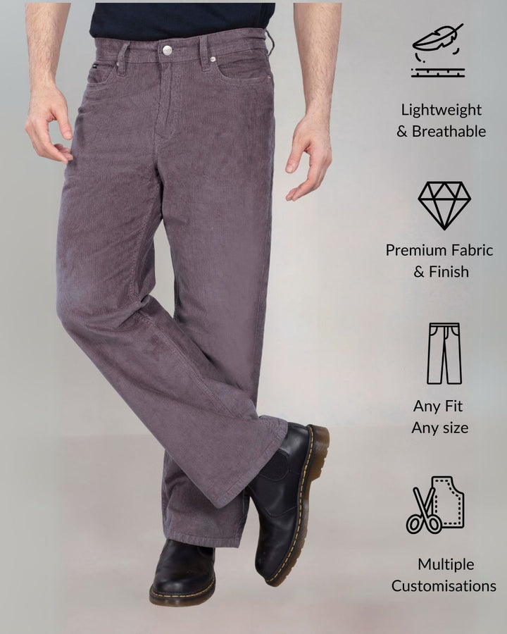 Custom made Dark Grey Classic Straight Fit Corduroy Cargo for Men