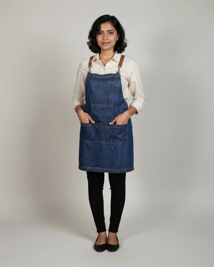 Deep Space Blue Denim Cross-Back Kangaroo Aprons