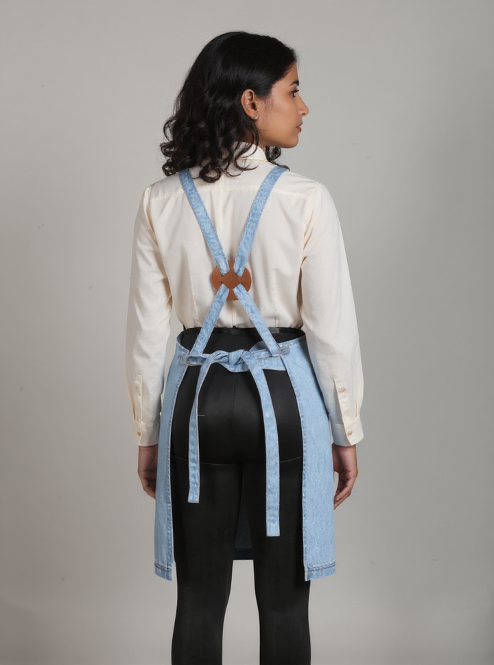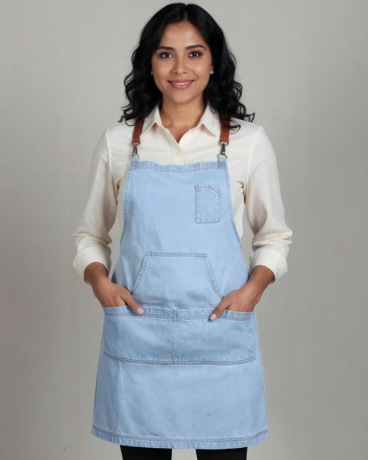 Glacier Blue Denim Cross-Back Kangaroo Aprons