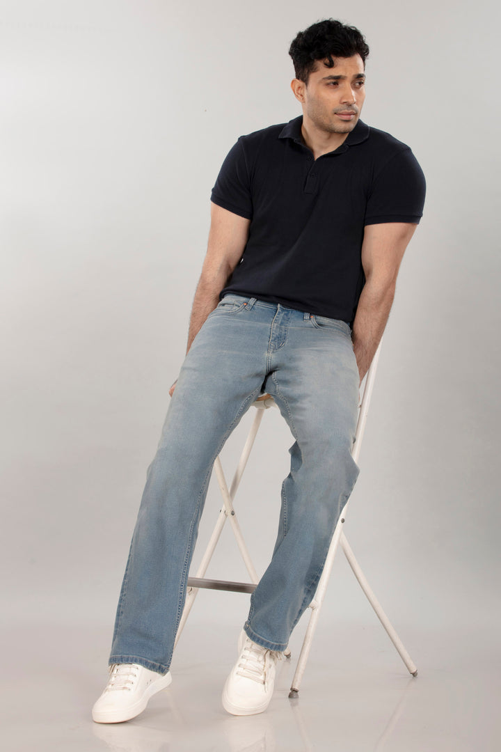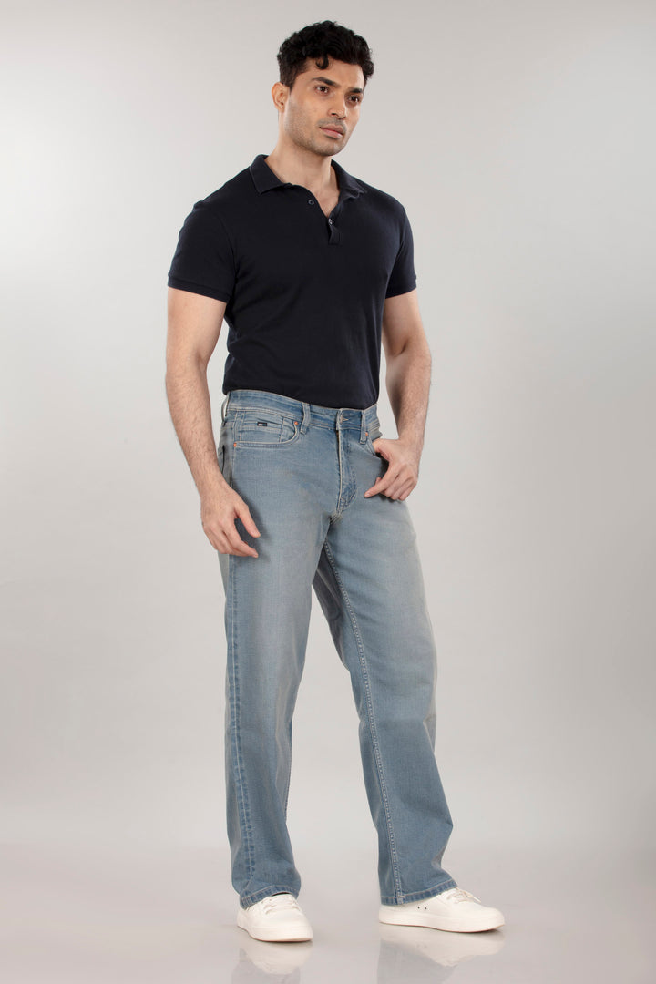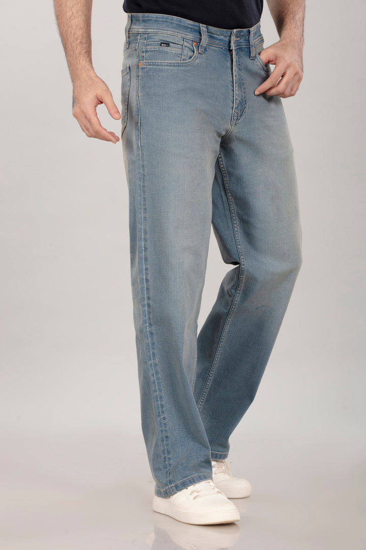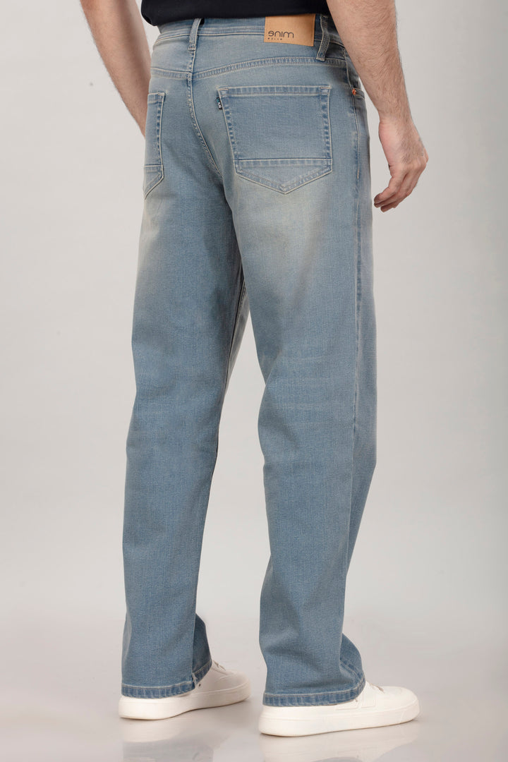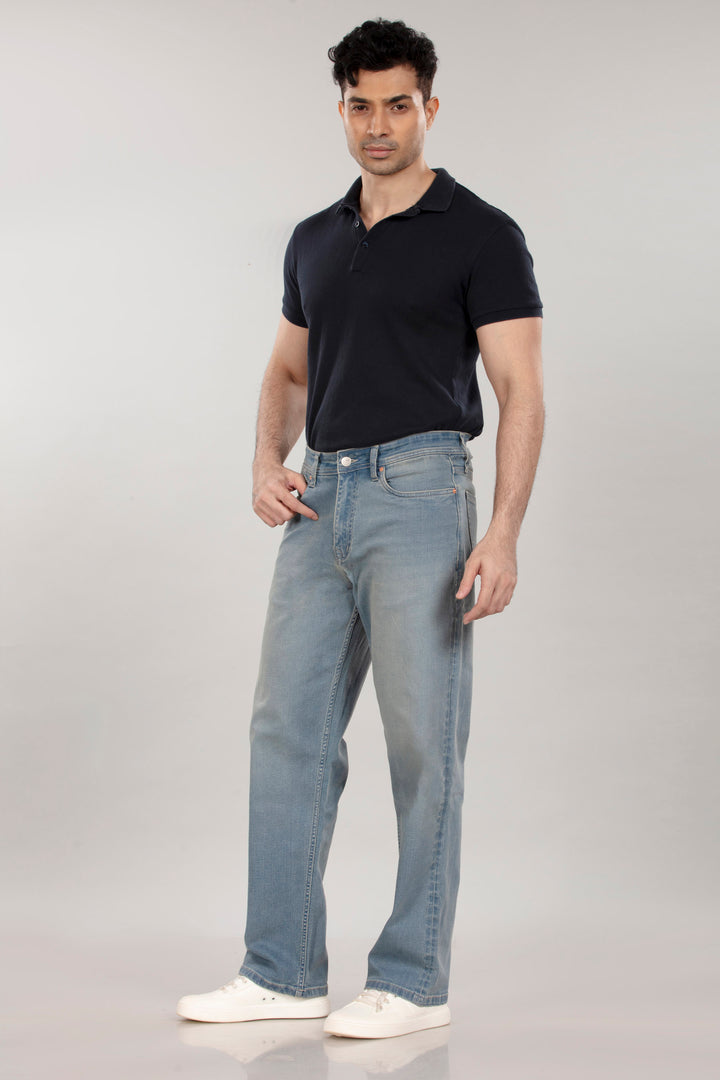 Washed Glacier Blue Denim Relaxed Fit Jeans