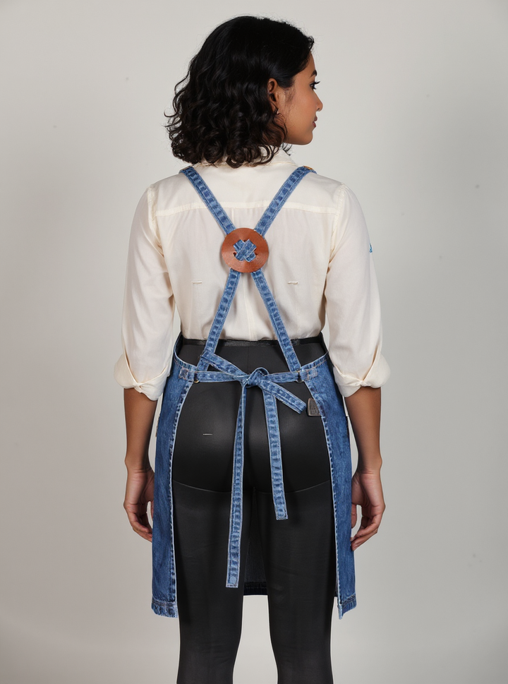 Mid Blue Denim Cross-Back Kangaroo Aprons