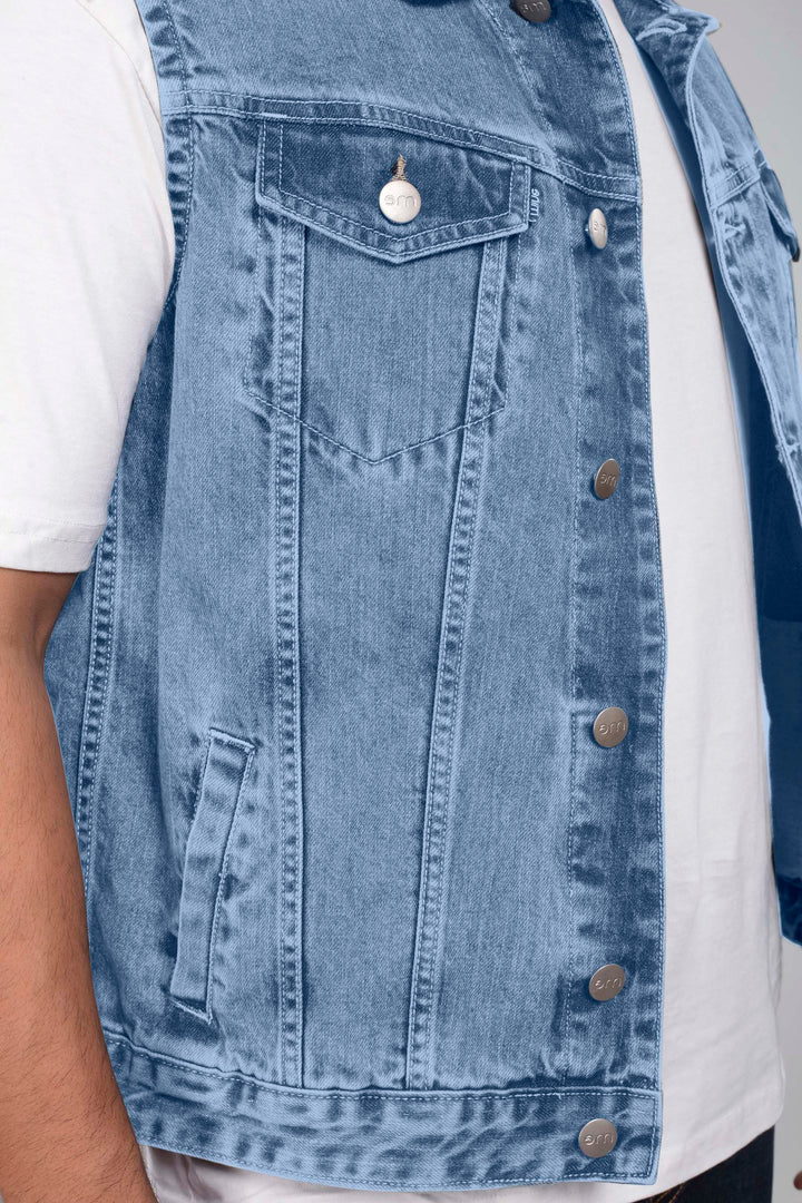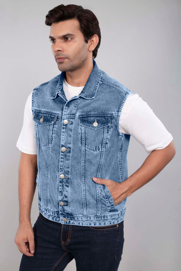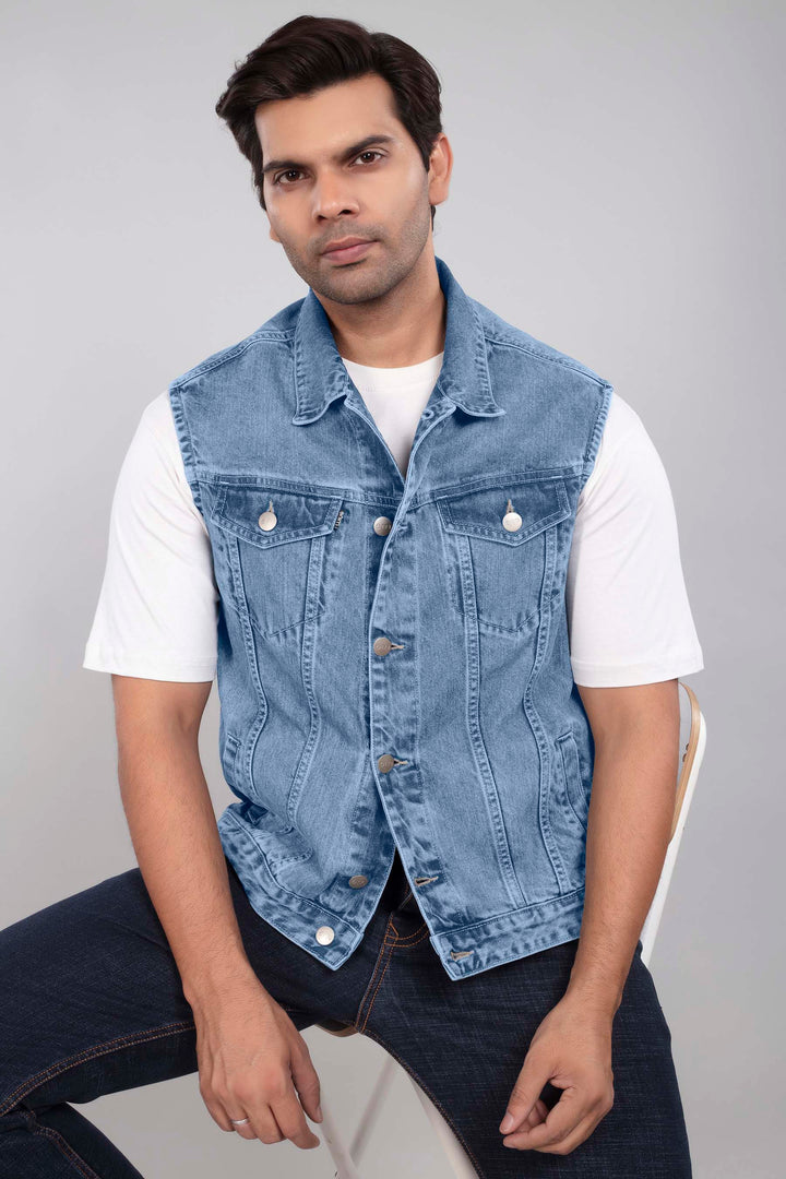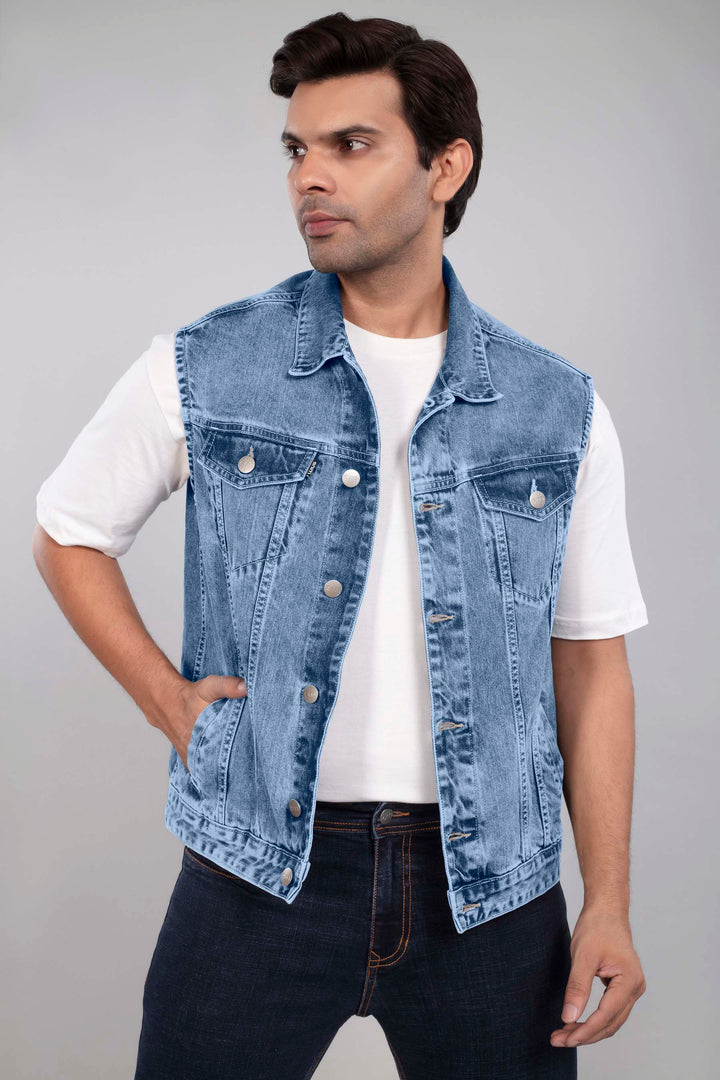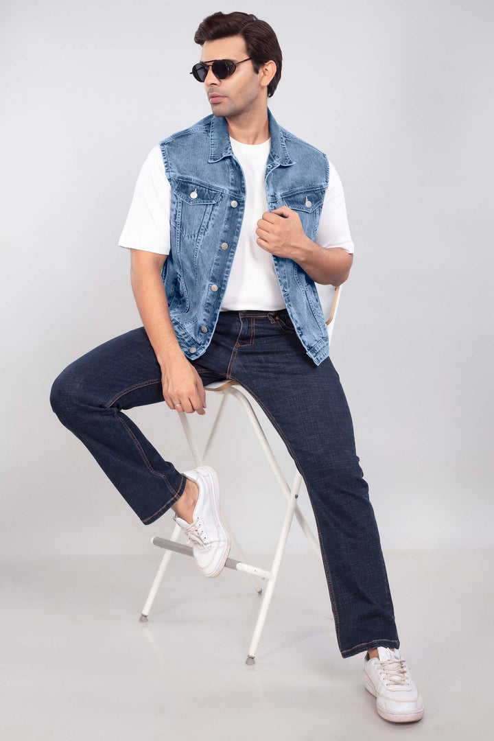 Mid Blue Denim Sleeveless Jacket