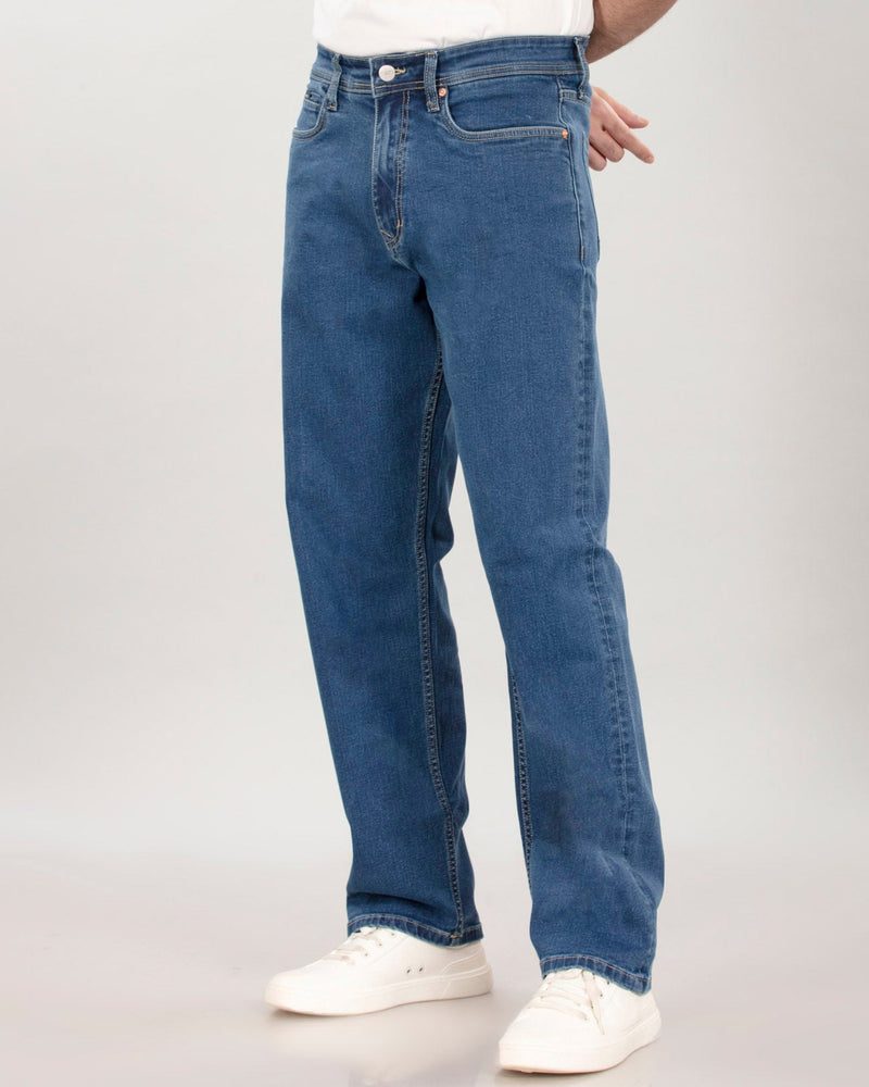Mid Blue Stretch Denim - Relaxed Fit Jeans