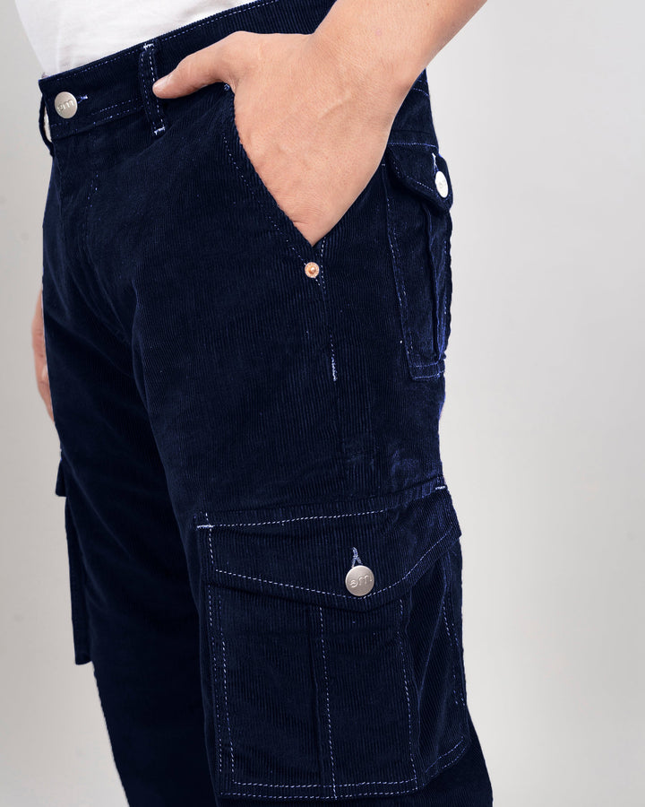 Custom made Navy Blue Classic Straight Fit Corduroy Cargo for Men