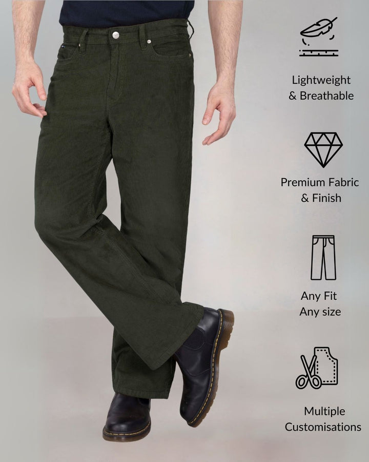 Custom made Olive Green Classic Straight Fit Corduroy Cargo for Men