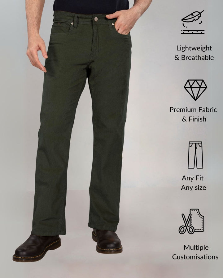 Custom made Olive Green Classic Straight Fit Corduroy Cargo for Men