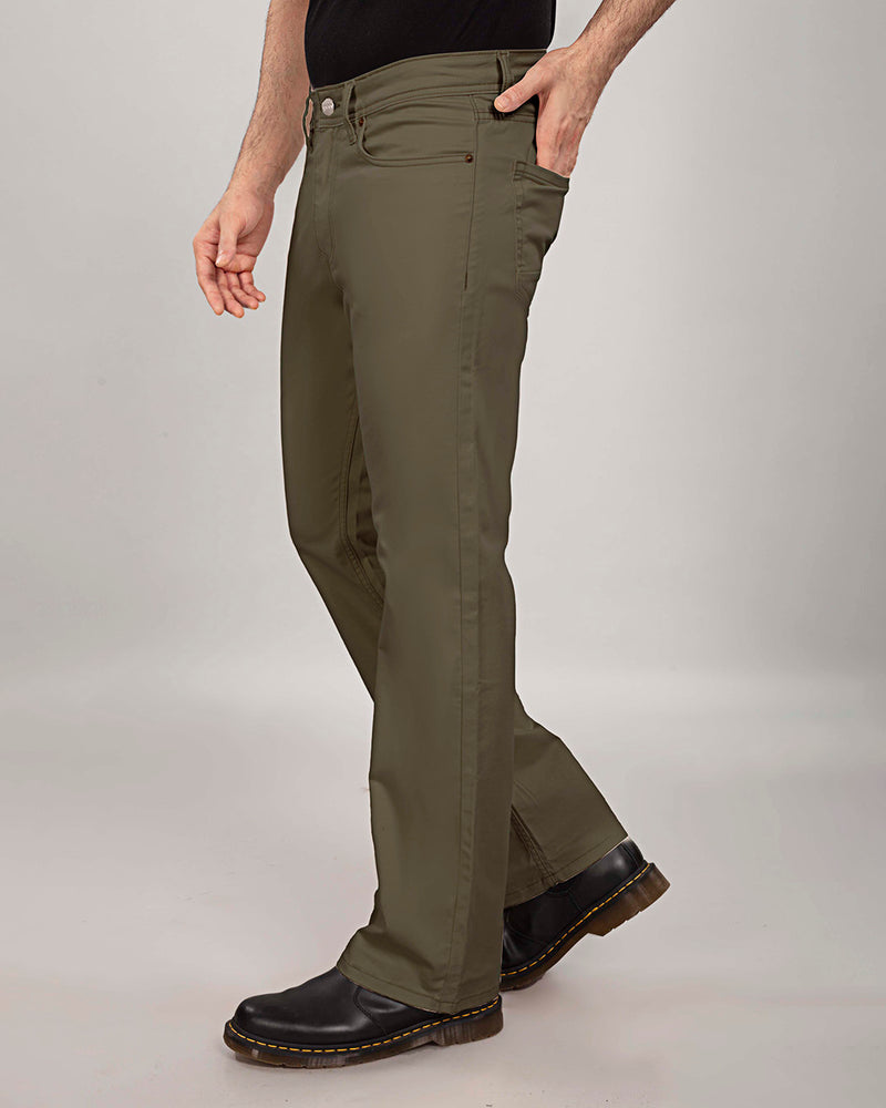 Olive Stretch Cotton - Bootcut 5 Pocket Chinos