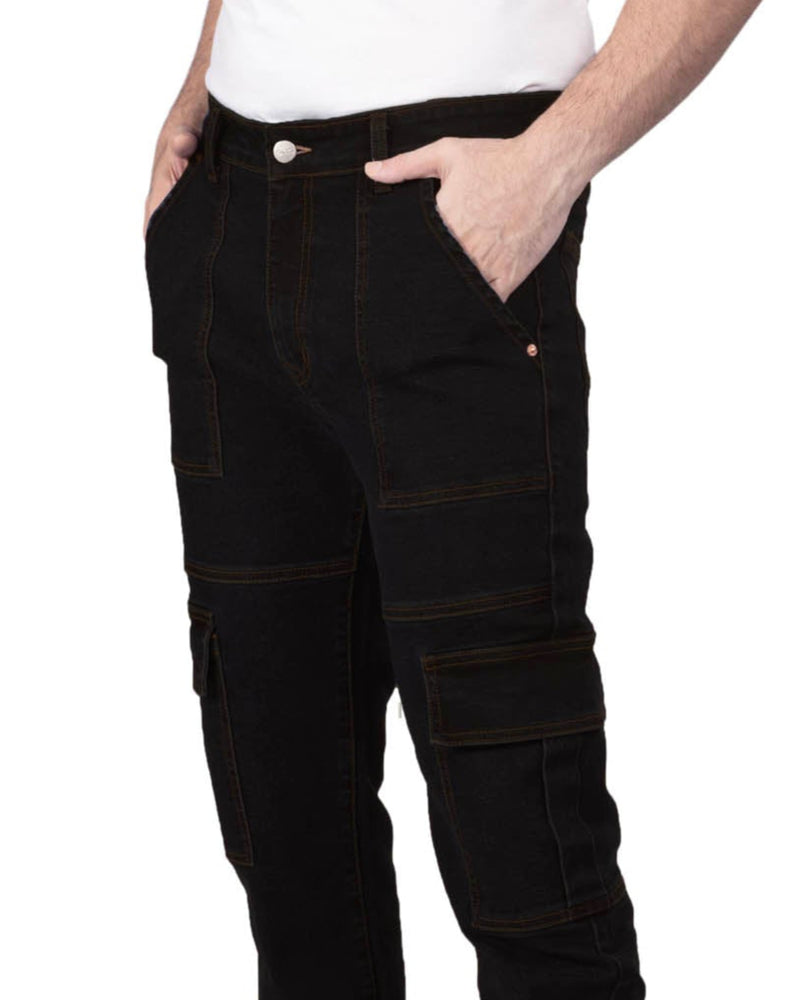 Pure Black Non-Stretch Denim Neo Cargo