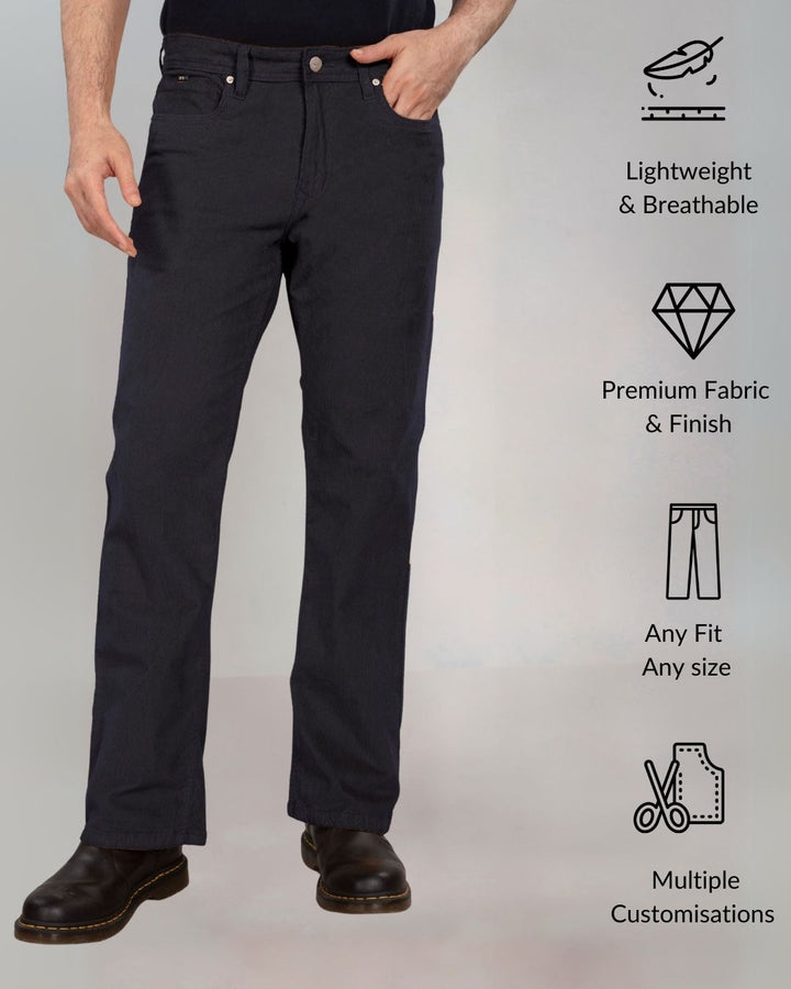 Our good looking and highly durable stretch corduroy is a blend of Cotton and with 2% Elastane, sourced from one of the Finest mills in India with YKK zippers and premium quality Buttons and Rivets.                ...Read more