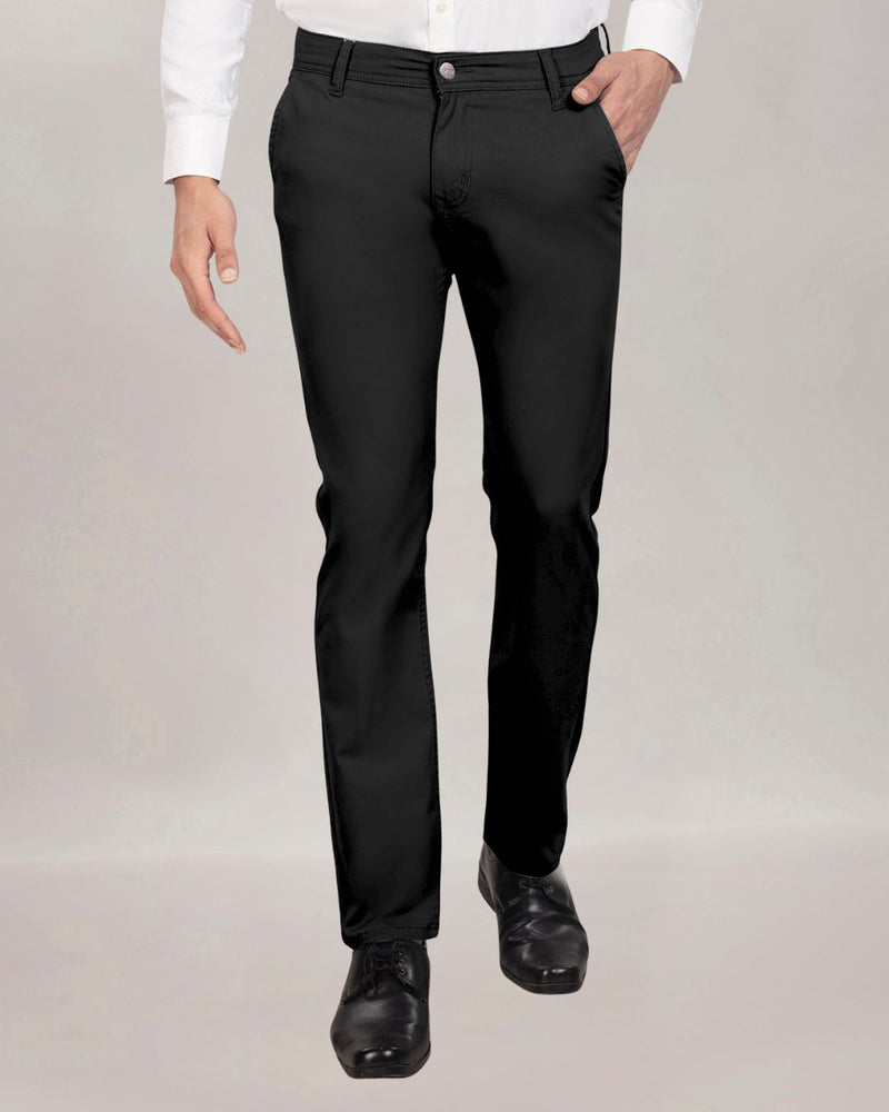 Pure Black Stretch Cotton - Straight Fit Chinos